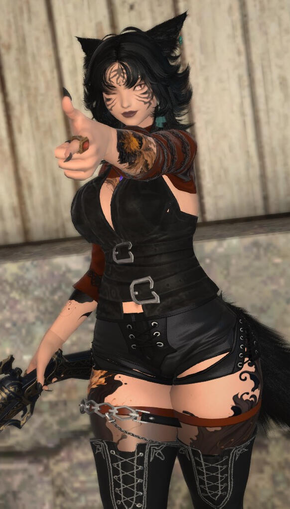 The life of the nomadic tribes of the deserts were rough but together they made it work and lived as a family. Most did at least and all families have their dramas. This one let it go too far. A self proclaimed hunting accident would take care of a bloodline. At least they thought it would till the newborn was found in a tent. They were monster hunters but couldn't kill an innocent baby, but no one wanted to fully care for it.So this little black haired Mi'qote became the community child, being passed around like a hot potato till she could fend for herself. Living in a desert was no easy task and was easier as a group, so the wild hearted adventurous youth stayed with the tribe and did her best to become accepted. She was a skilled archer starting early and was quick on her feet.Thinking of new ways to be more resourceful, the young 10 year old Tetteke slipped a rather large egg from a caravan of merchants after hearing them talk about an exotic bird like beast called a Griffin. Raising the hatchling by herself she waited till she could fly on it before introducing it to the tribe. She named him Zyran and from the moment they flew together they were inseparable. Her wild thrill seeking made her the first and only flier of the tribe. From the sky she was able to be way more effective in killing the beasts of the desert and the perfect scout. The tribe often sent her to scout far ahead, over wanting to hunt with her.She didn't know why they always pushed her aside, why they never truly accepted her. They told her, her parents died in a hunting accident. It was feasible to her, they hunted the great ruthless beasts of the desert to survive and not everyone did. She never paid attention to the hushed whispers, always thought if she could be enough for them that she would actually be accepted instead of pushed away. She had lived most her life this way, till civilization began poking into the desert. The tribe was allowed to interact as long as they did not mate with the outsiders. This was when Tetteke slowly began to realize she could be desired. Her voluptuous curves drew many of an outsider's eye. One even caught her eye, or at least what he was packing did. A gun, something her tribe never had the coin for or the training in, this man had one and was willing to teach her.Greatly interested in the weapon she would slip out and start spending a great deal of time with the outsider, learning everything she could about the weapon. He was defected soldier from a land very far away, he had fled during the gruesome war, a Garlean. He was looking for a place to claim a new home and try to forget the atrocities his hands did for his country. He thought surely his people wouldn't reach this far and he would be safe.He enjoyed teaching the curious feline everything he could, even treated her and her Griffin to things from his home. Being an excellent archer translated well to becoming a marksman and the man was surprised how quickly Tetteke took to the advanced weaponry. Unfortunately for him, he began to fall for her. That wasn't something she could allow, it was a strict rule with the clan, no outsiders. He couldn't take no as an answer, he knew how her tribe treated her and he couldn't stand seeing her try so hard just for them to walk all over her and push her aside. He went to the tribe, confessed his love for her. This was the last straw to the tribe, and the final box ticked that would let them push her out.It was also the last string holding her sanity. Her mind shattered as her tribe revolted against her. No, she couldn't let this happen, they would accept her. She took up his gun and without a word put the man down, with the very weapon he taught her with, that he favored. He laid dead in a pool of his blood and the tribe still did not accept her. Heart shattered and soul broken she would show them what a great shot she had become, killing a few of them before they could charge at her. Zyran snatched her and the dead man's body up then sped off before Tetteke could take any deadly hits. In this lonely quiet flight she realized she had fallen the man and with a grieving heart would bury him in the sands. She took his gun, naming it after him, Theodorus. Her beloved favorite weapon.And so began her terror. The flying black cat and the teal Griffin. She had nothing more to lose. That night left her mind in a crumble, she was now madness. Targeting people only for the guns. Drawing them in, toying with them till they woke up with their own weapon to their skull and those sunset eyes smiling down at them, only one has survived. She would join a pirate crew, The Crimson Arcadia. She was able to take to the seas and fly all she wanted, take what she wanted, be truly free.